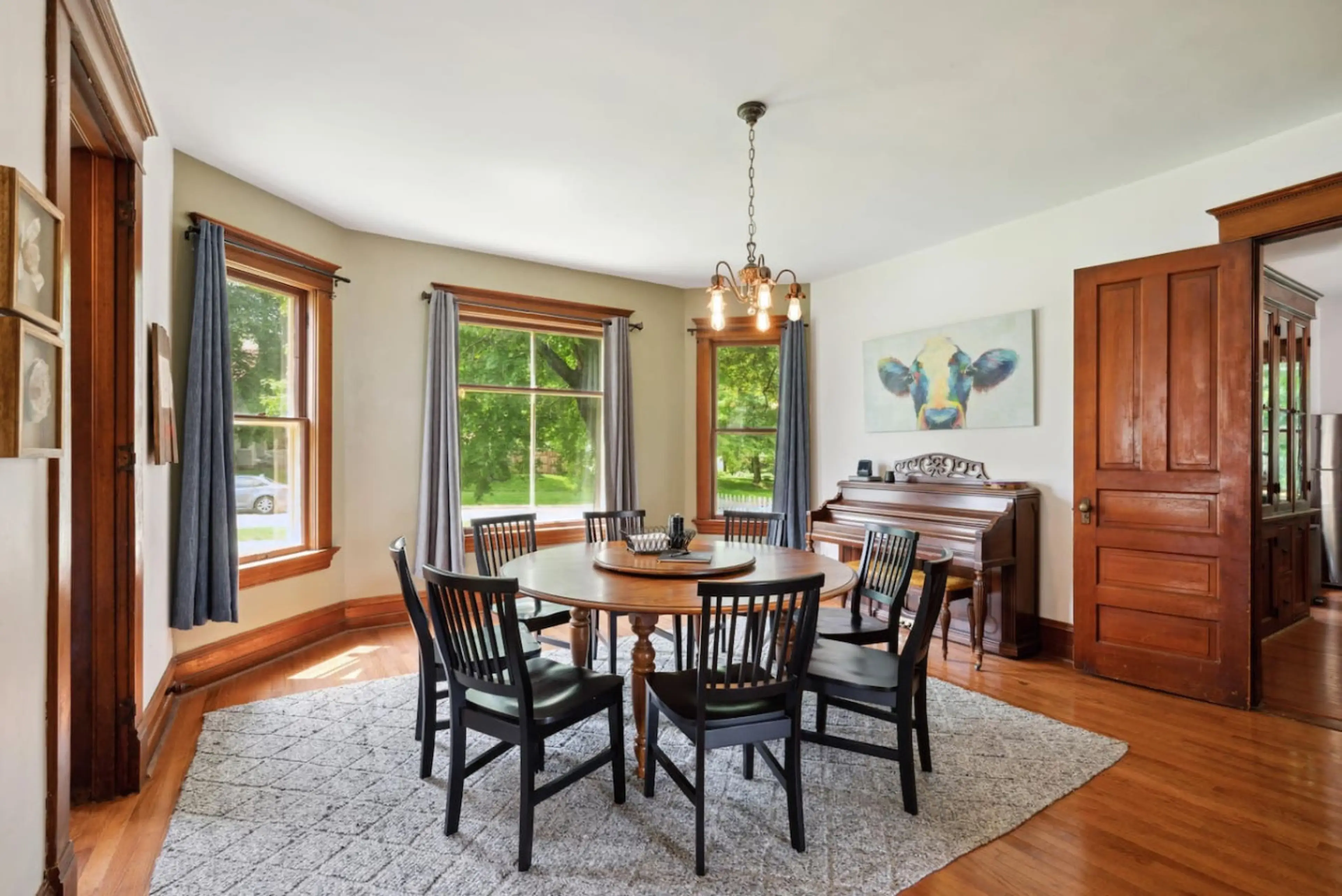 Stay in a beautifully restored 4-bedroom, 2-bath historic Victorian just two blocks from downtown Pella. Ideal for families and groups, this spacious home blends timeless 19th-century character with the comforts of a modern stay. Gather around the dining table, cook in the fully equipped kitchen, or...